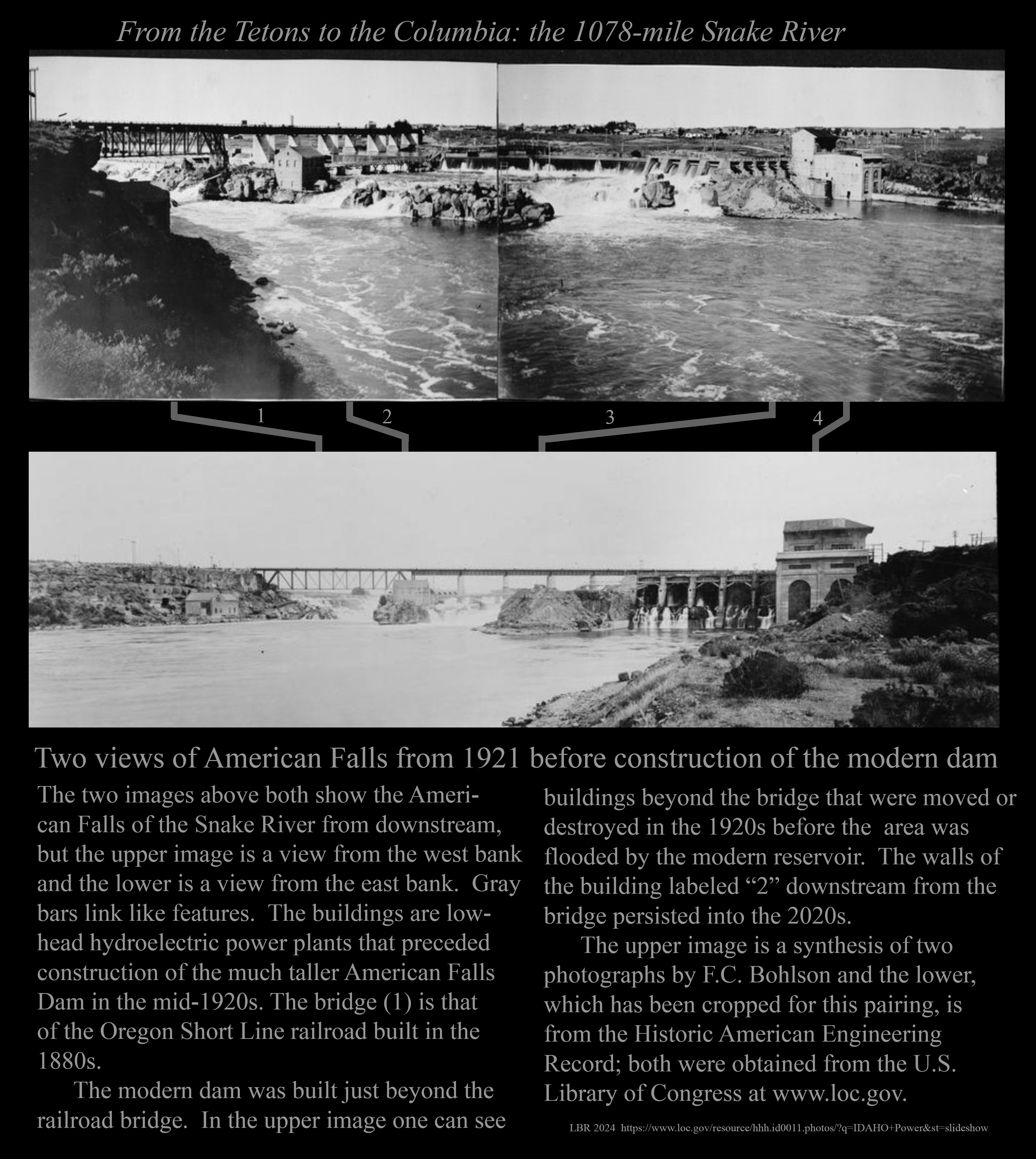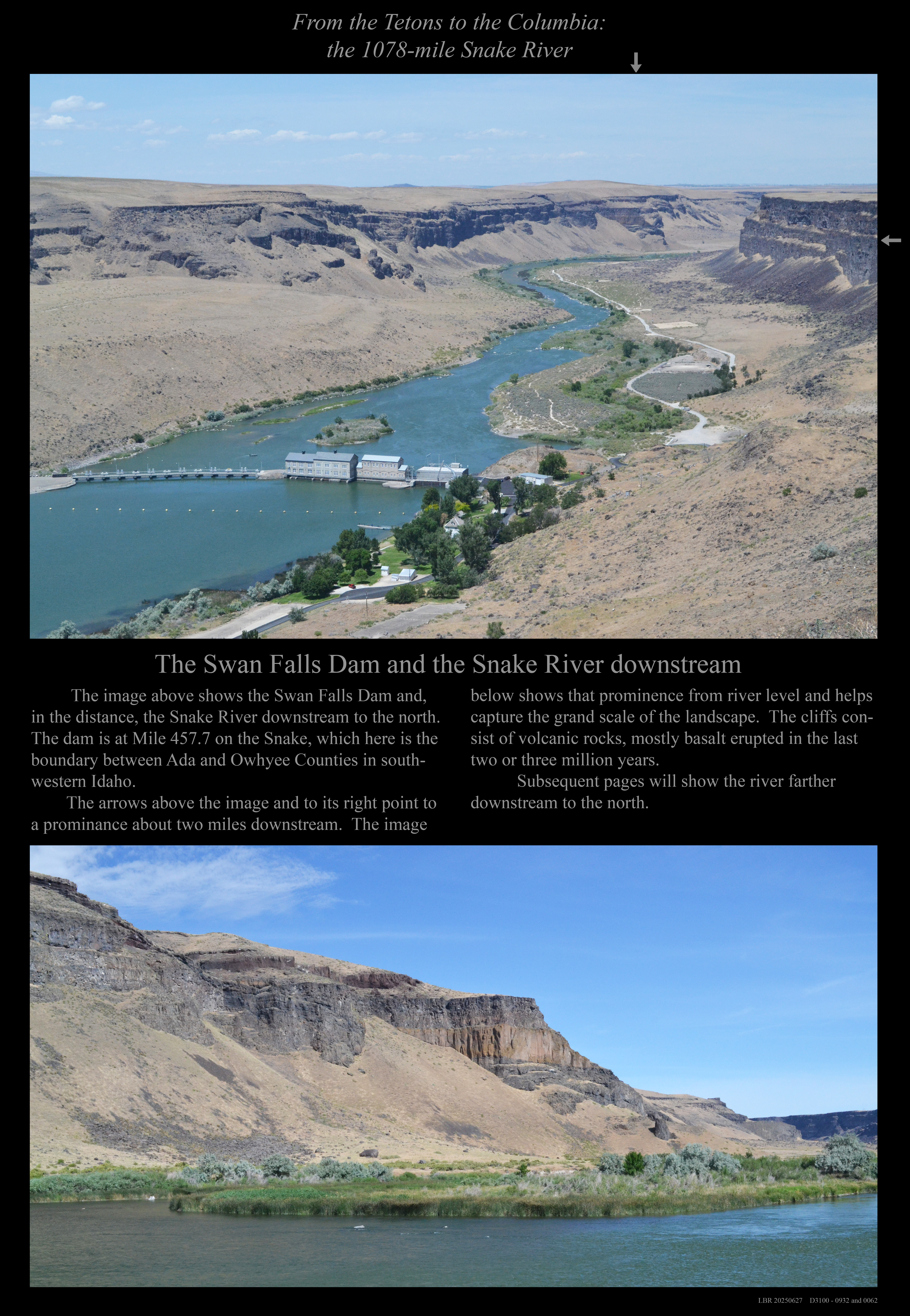 Two views looking upstream, downstream from Swan Falls.
