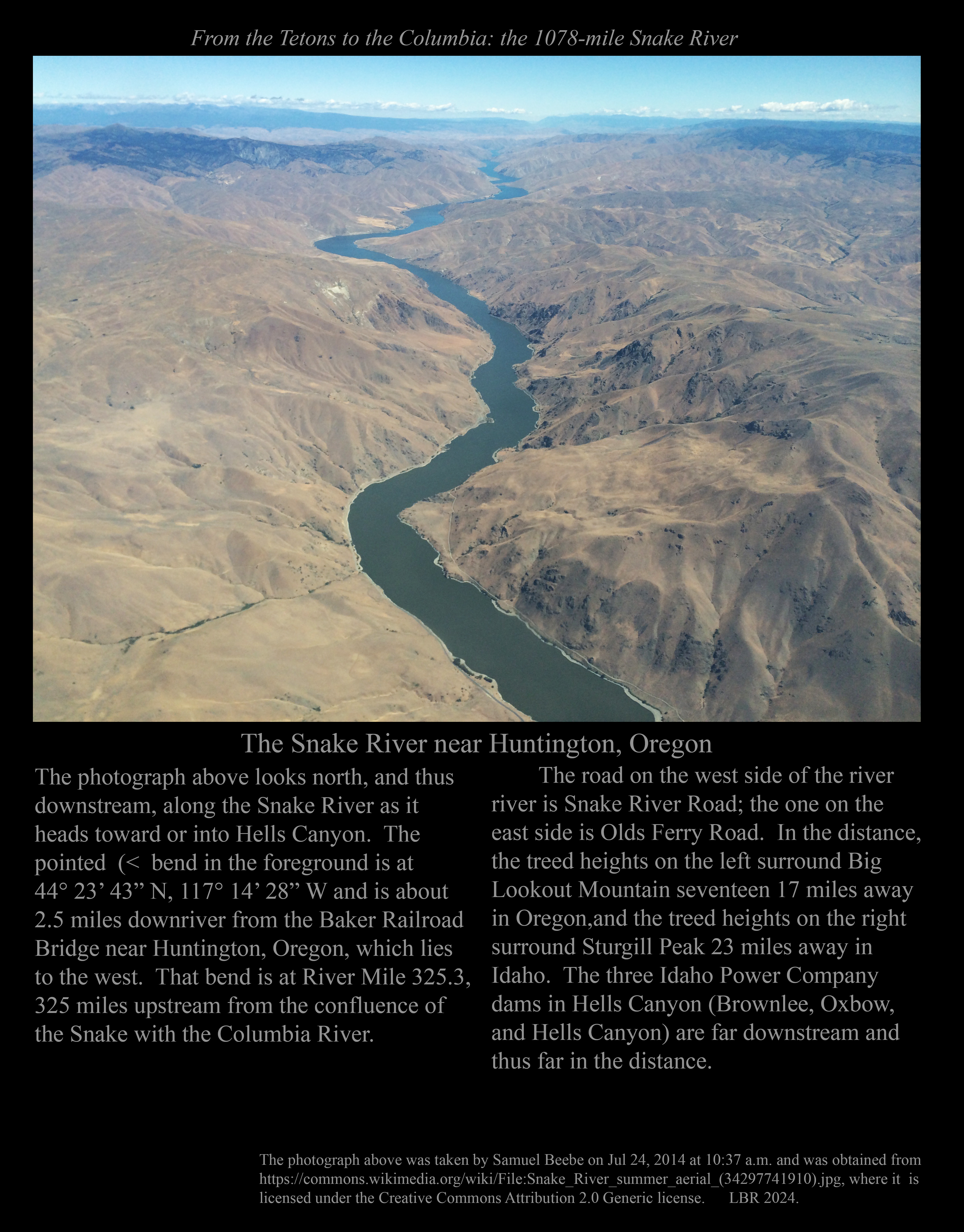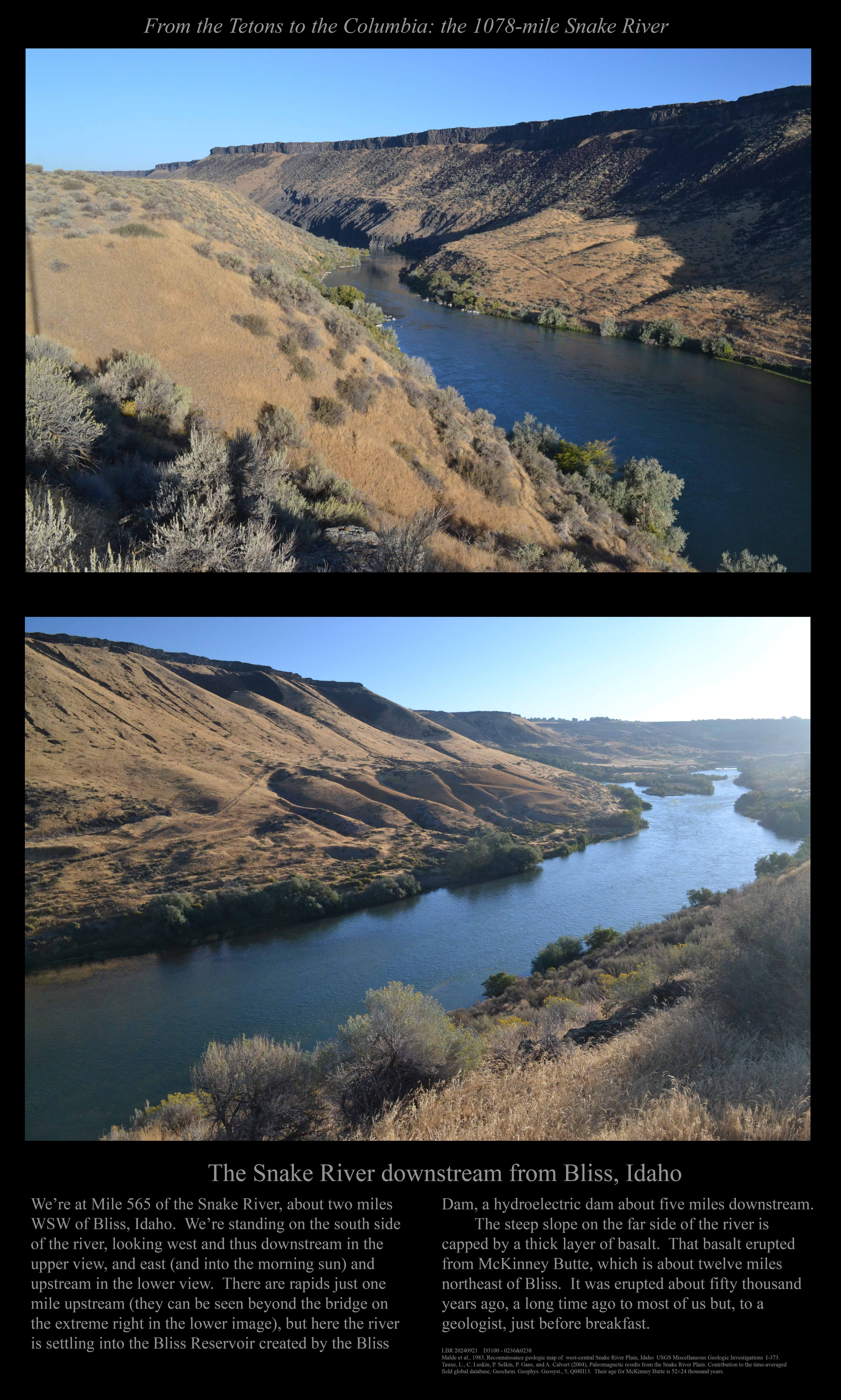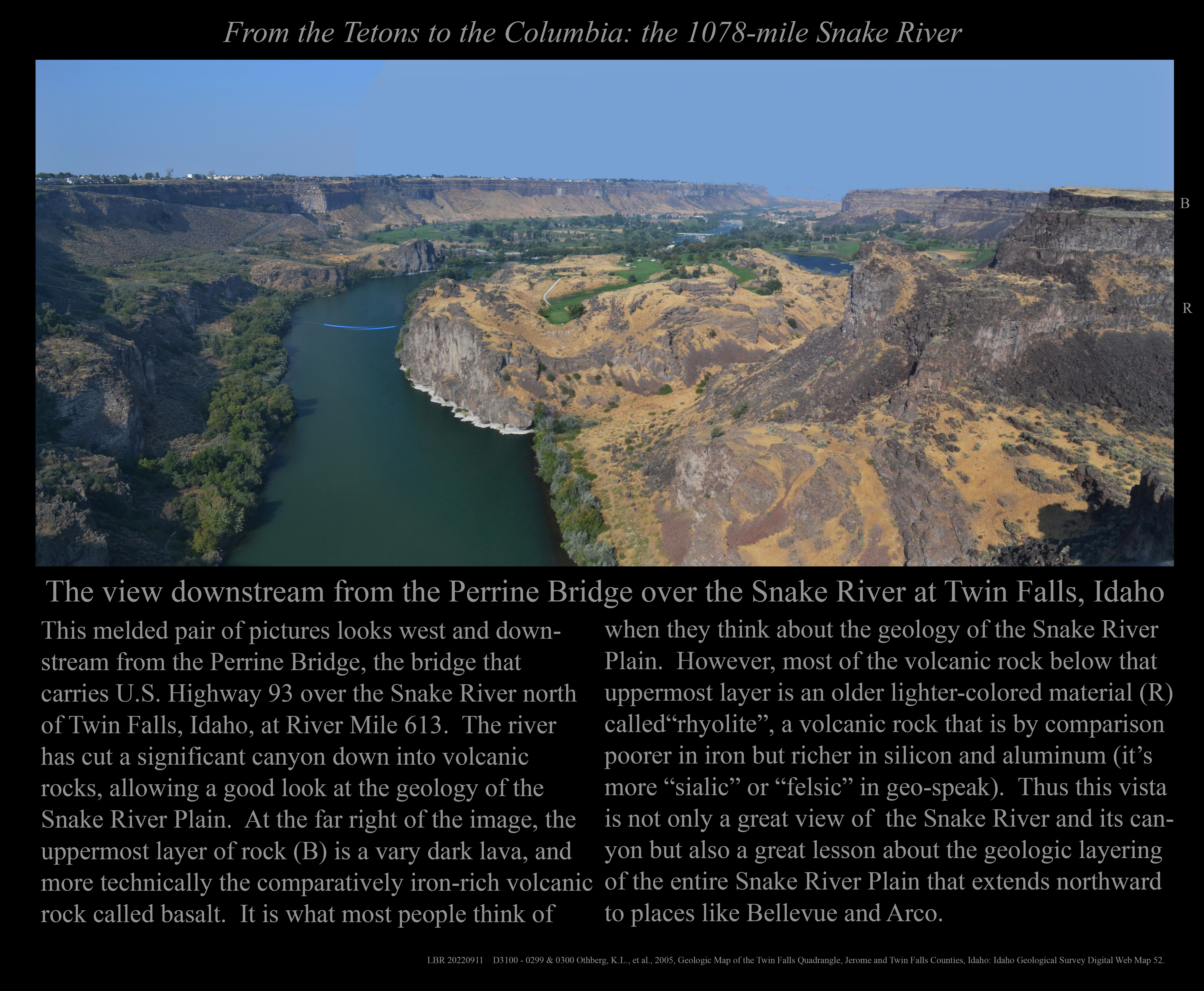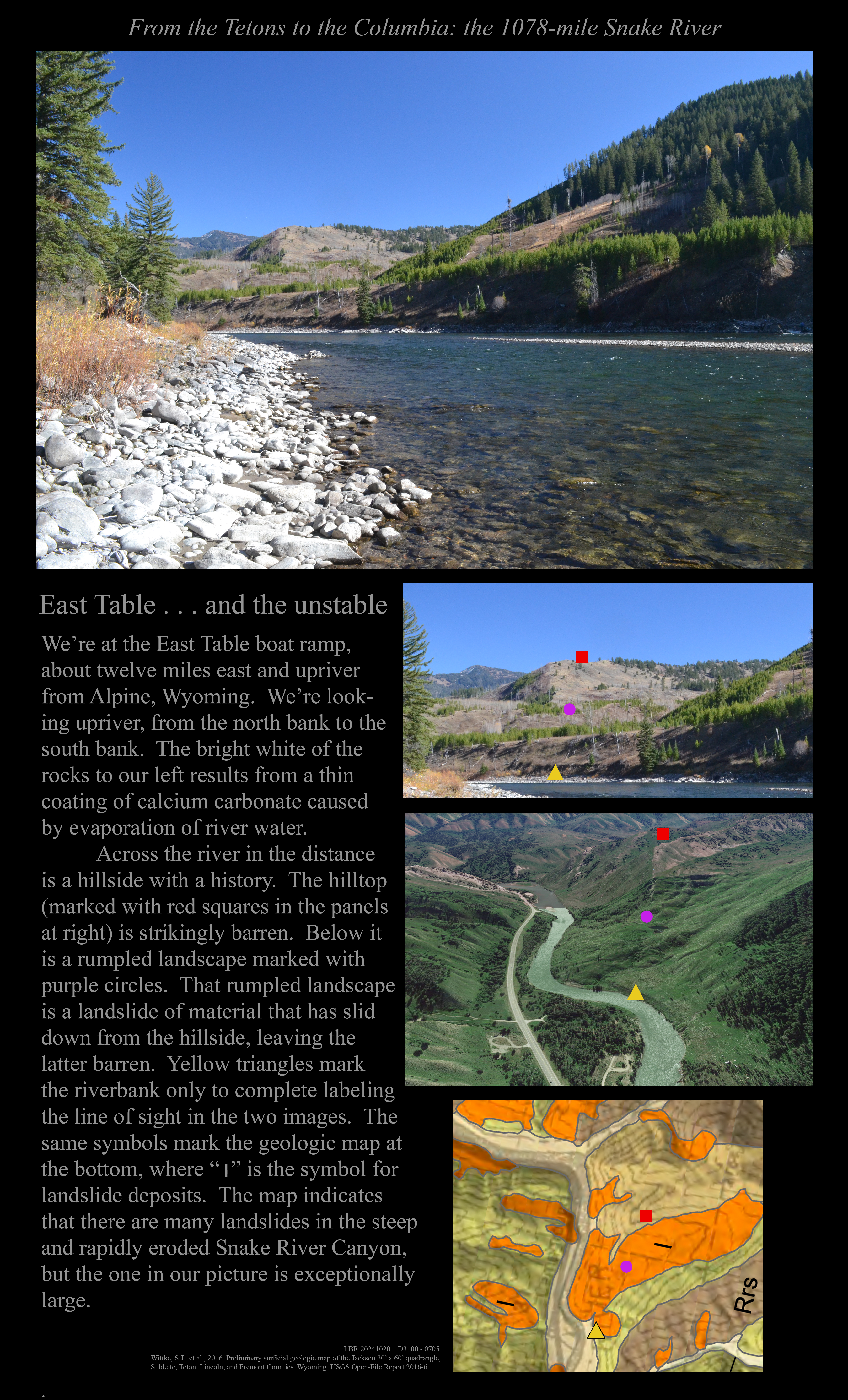 This is the early stage of a website intended to provide a photographic tour of the Snake River. The Snake extends from its headwaters in northwest Wyoming across southern Idaho, along the Oregon-Idaho and Washington-Idaho borders, and across eastern Washington to its confluence with the Columbia River. Pages/photographs are listed here in order from upstream to downstream, except as noted.