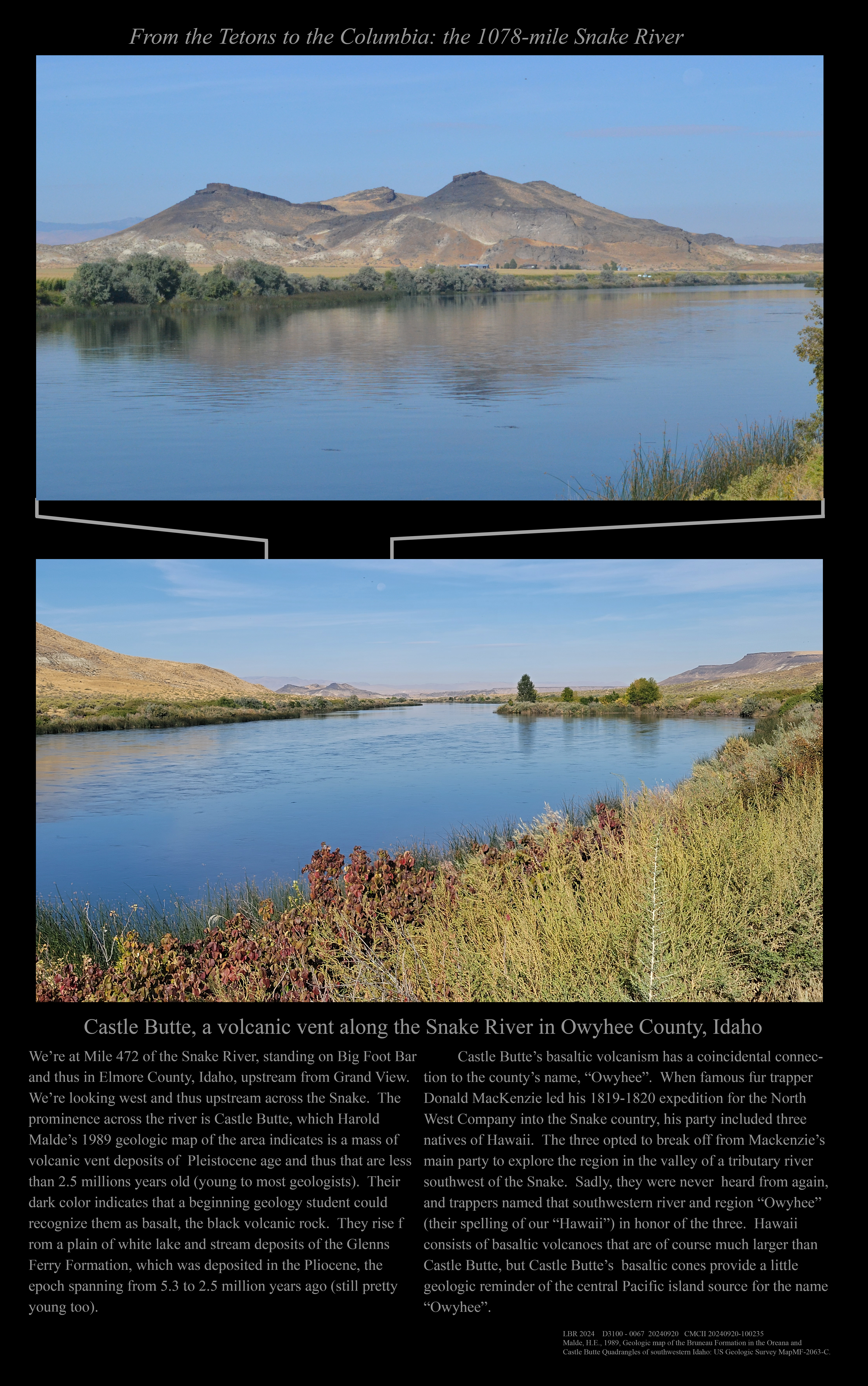 Castle Butte, a volcanic vent downriver from Grand View, Idaho.