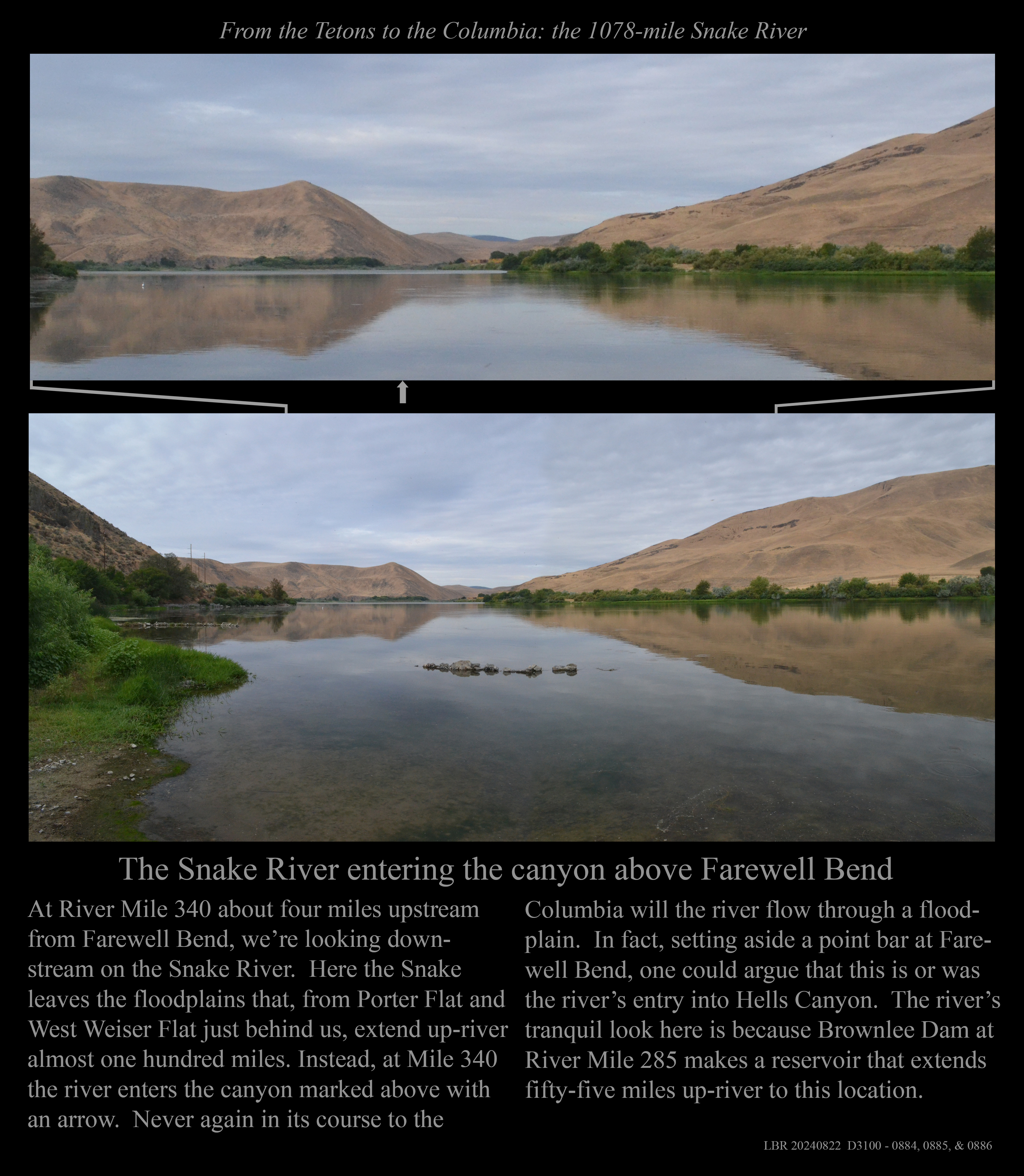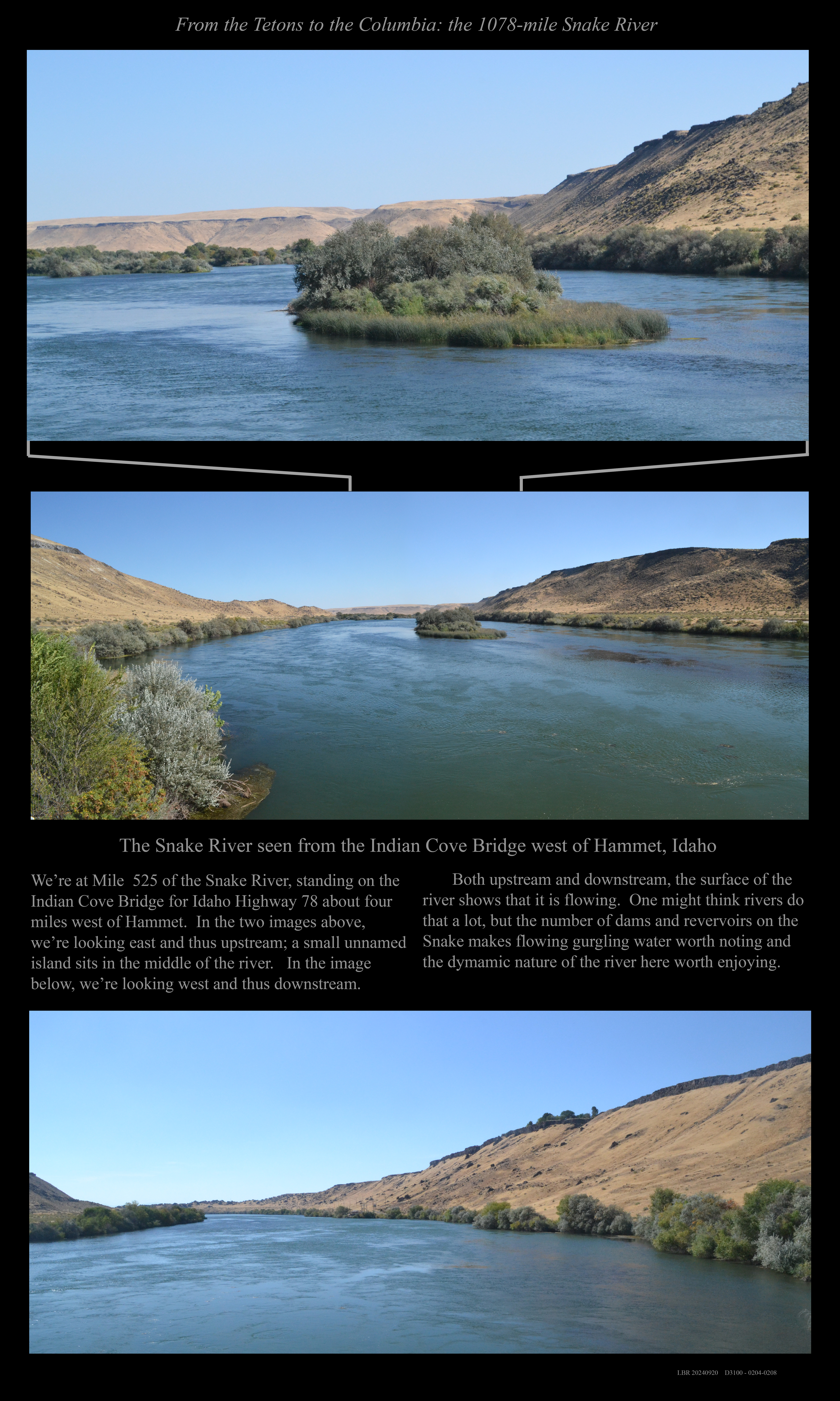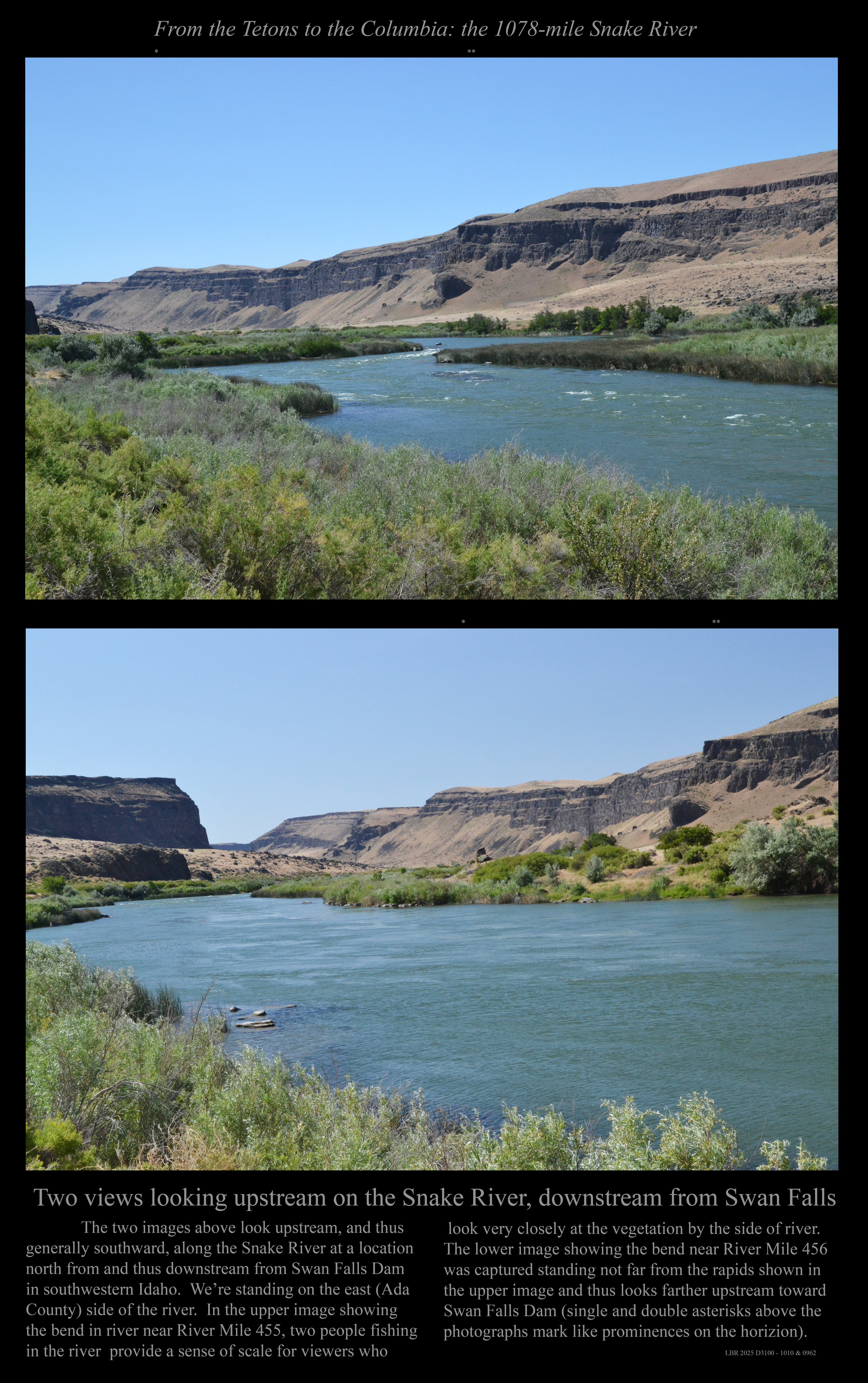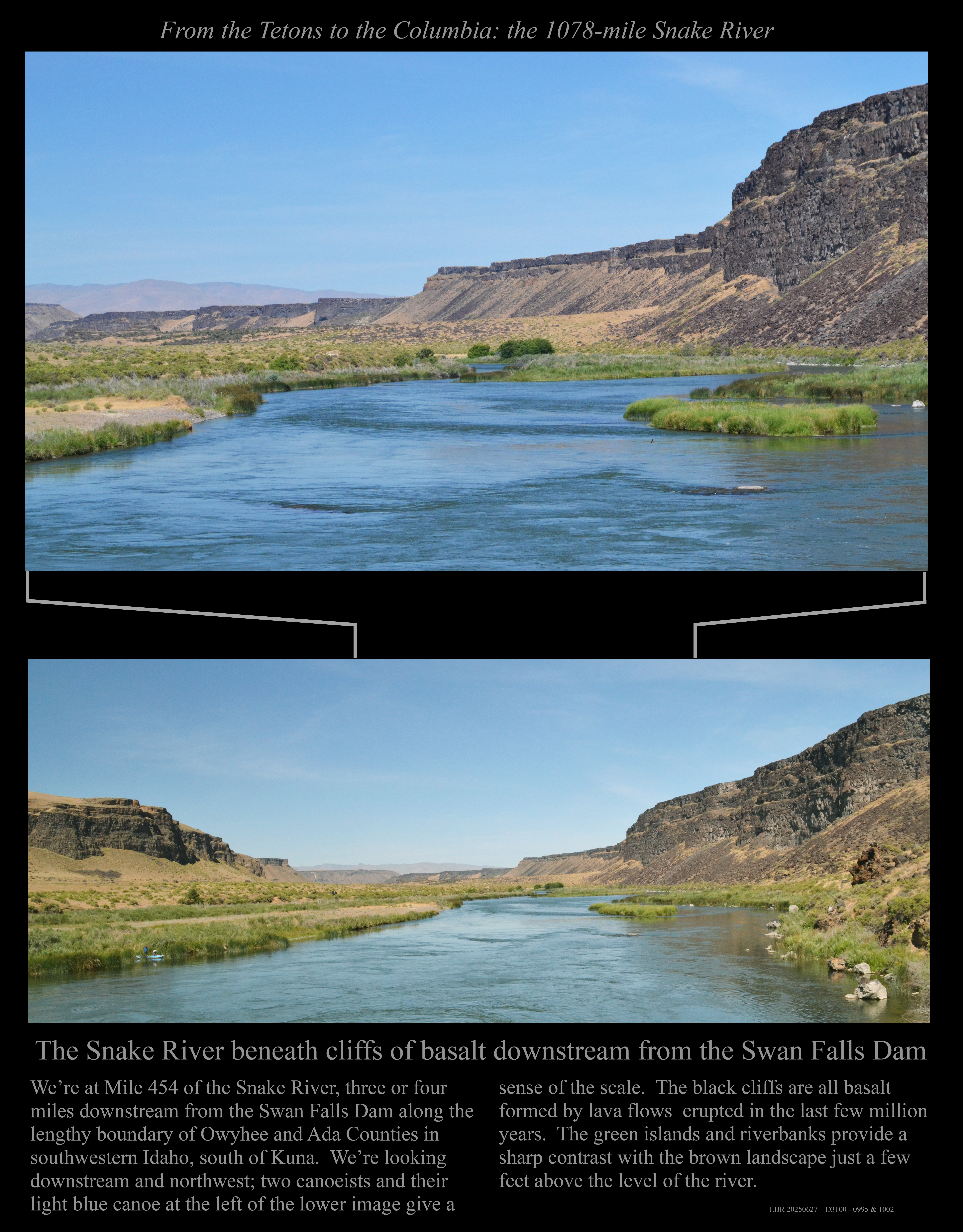 Two views looking downstream at Mile 454 well below Swan Falls.