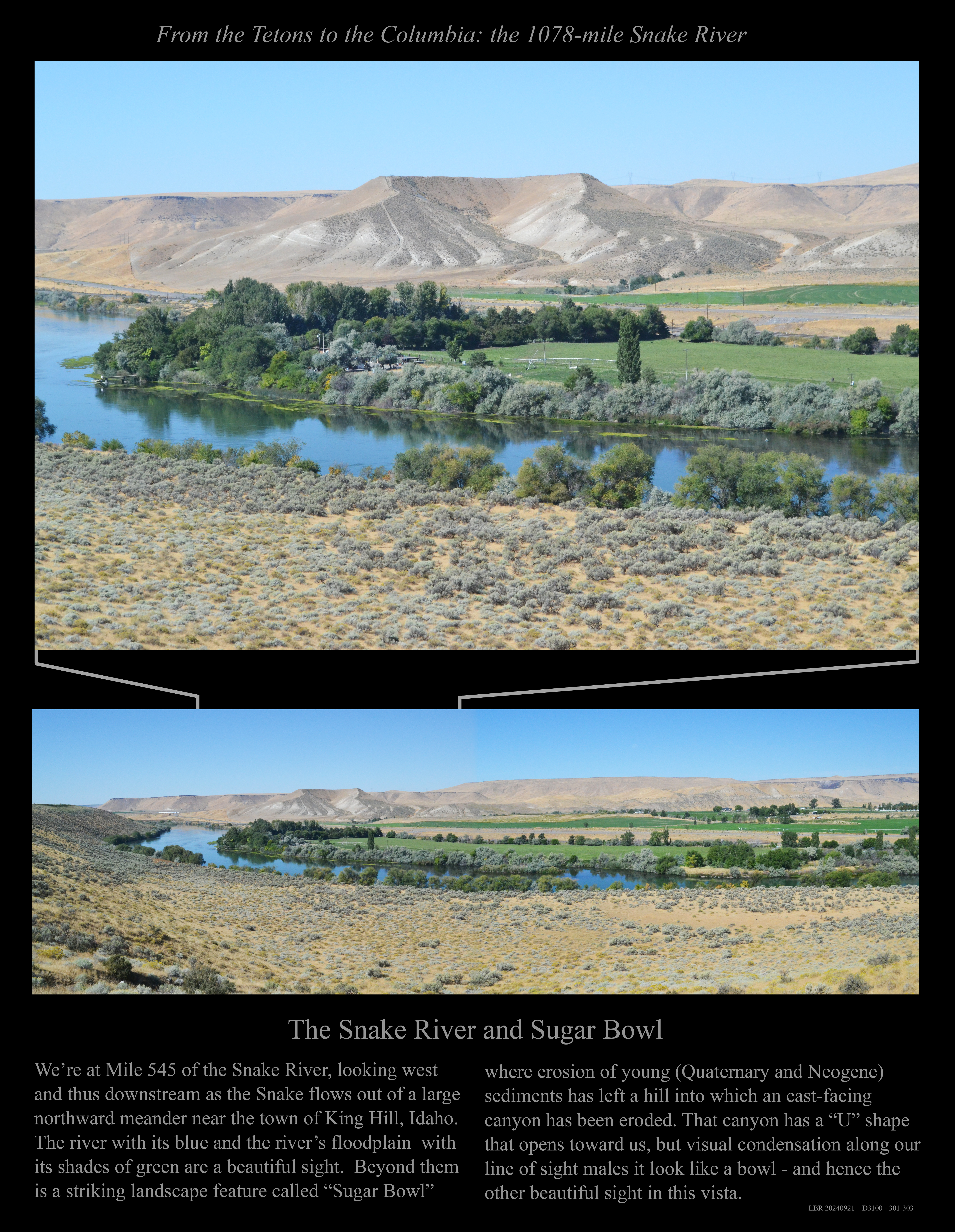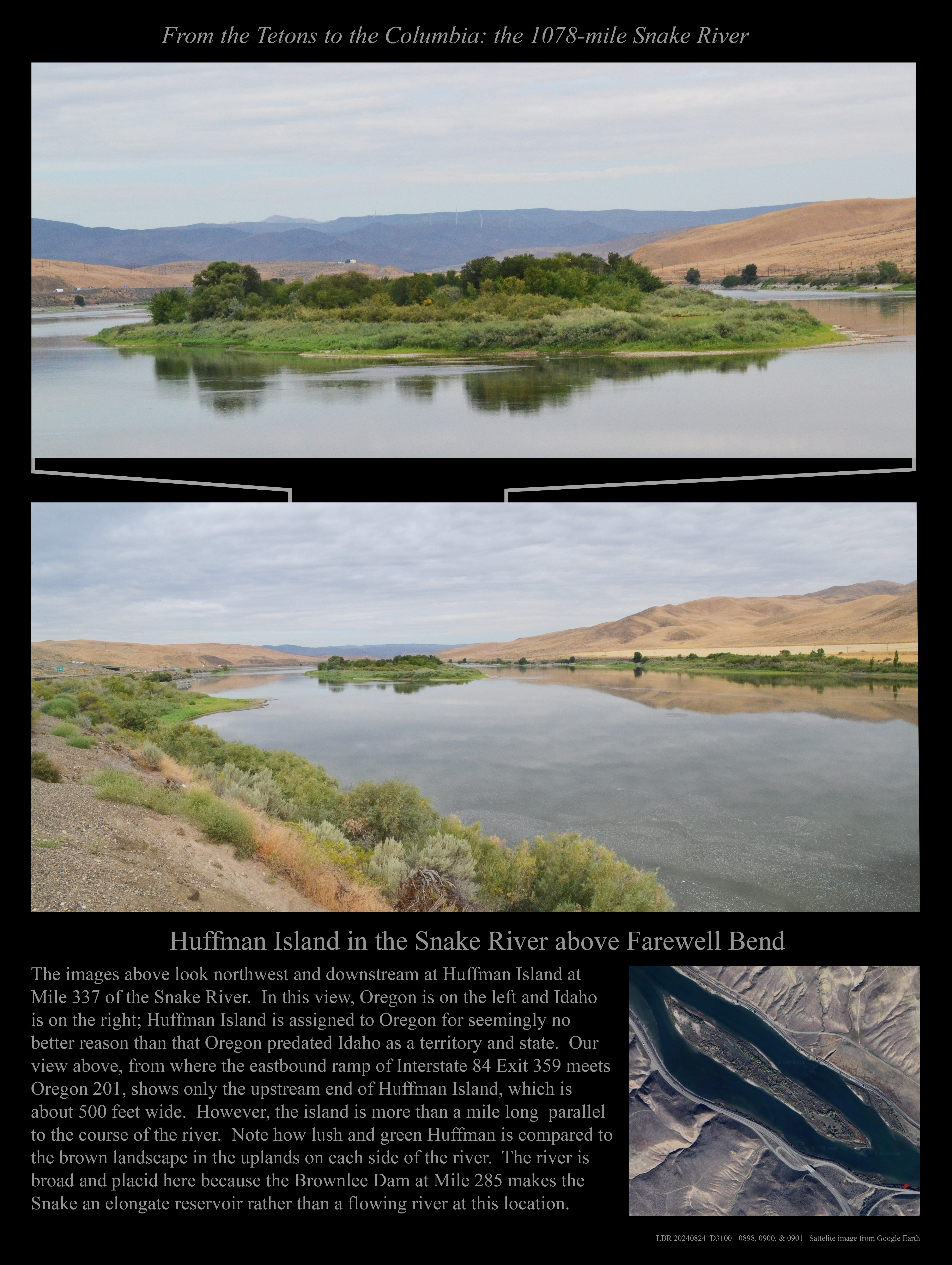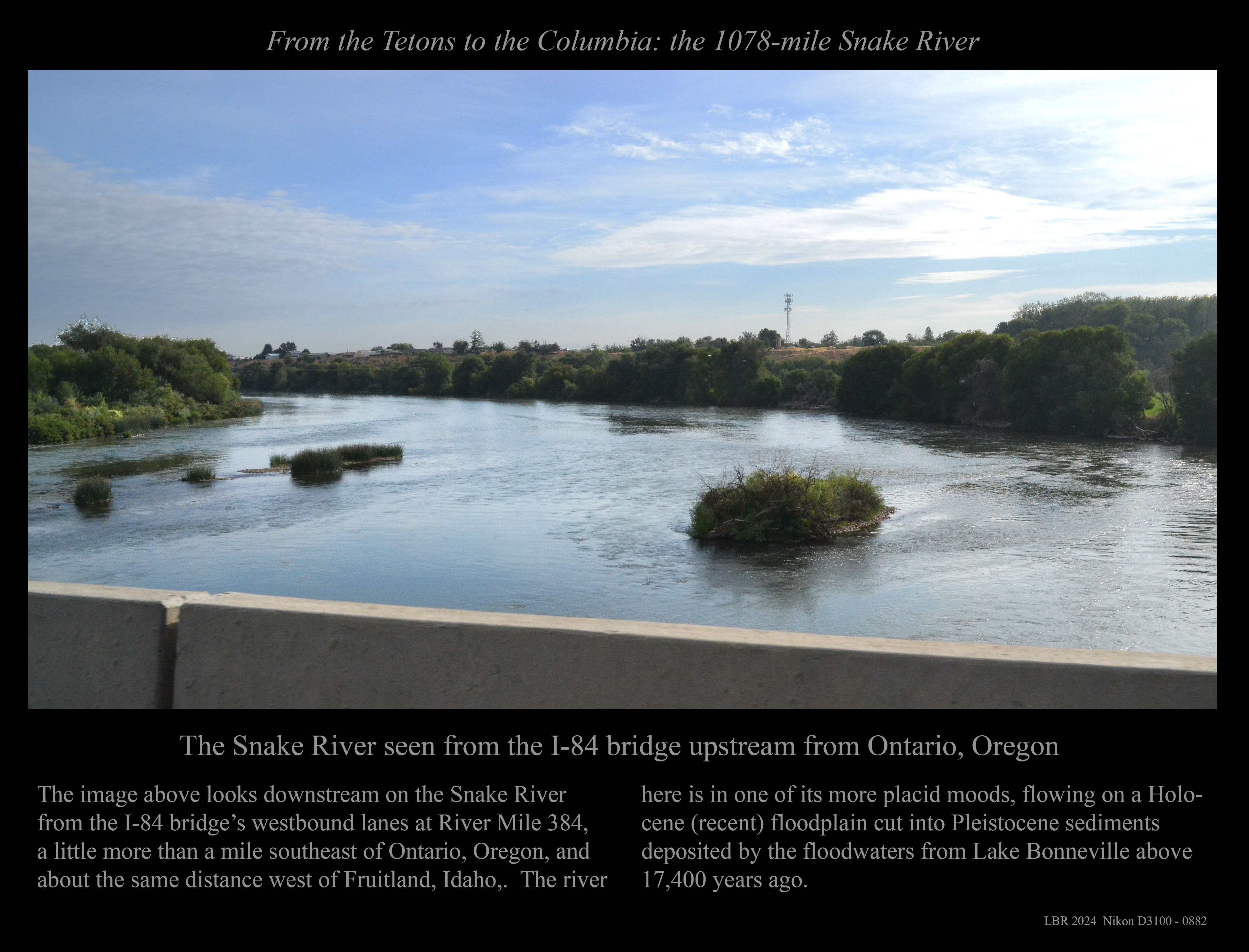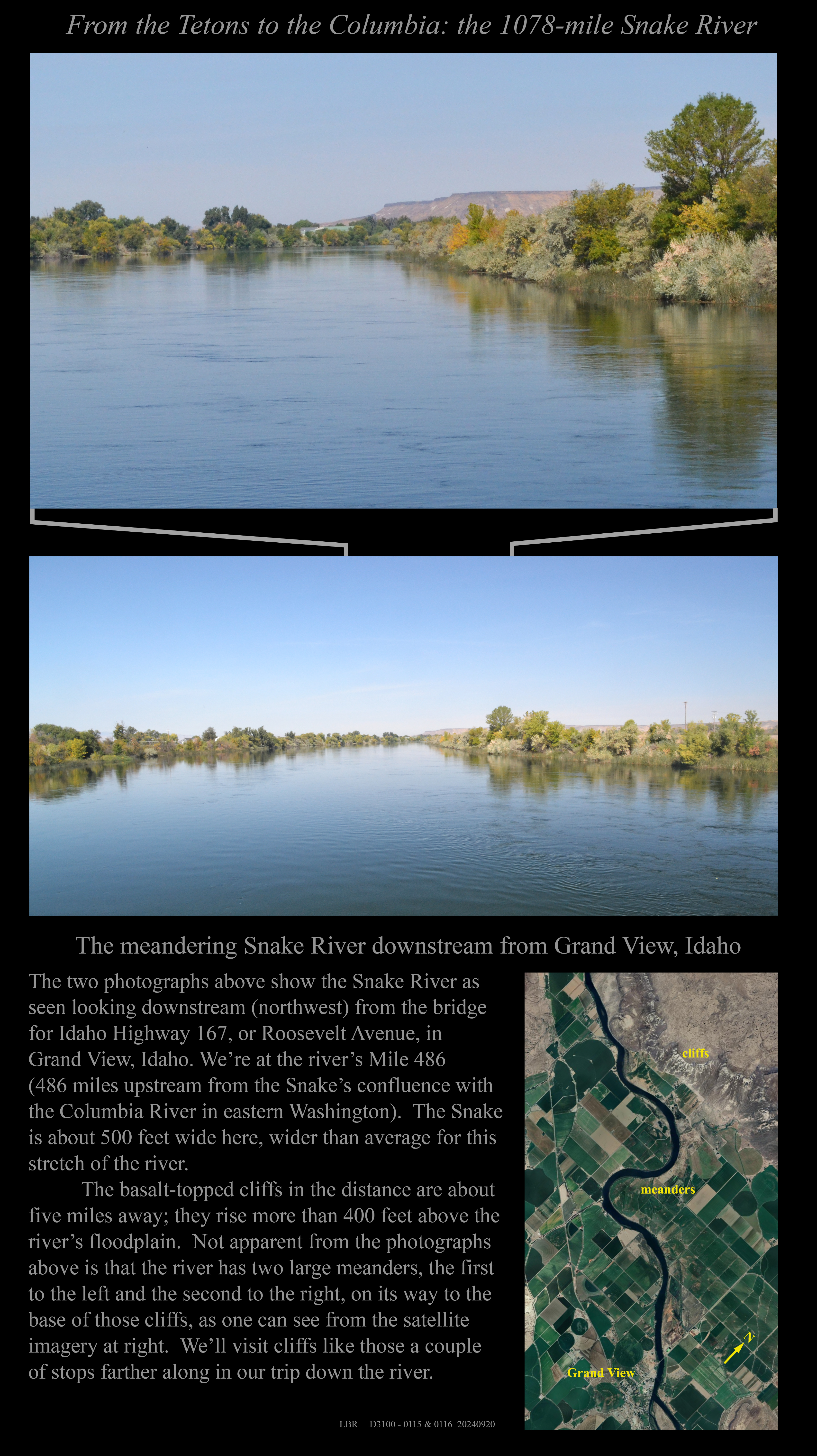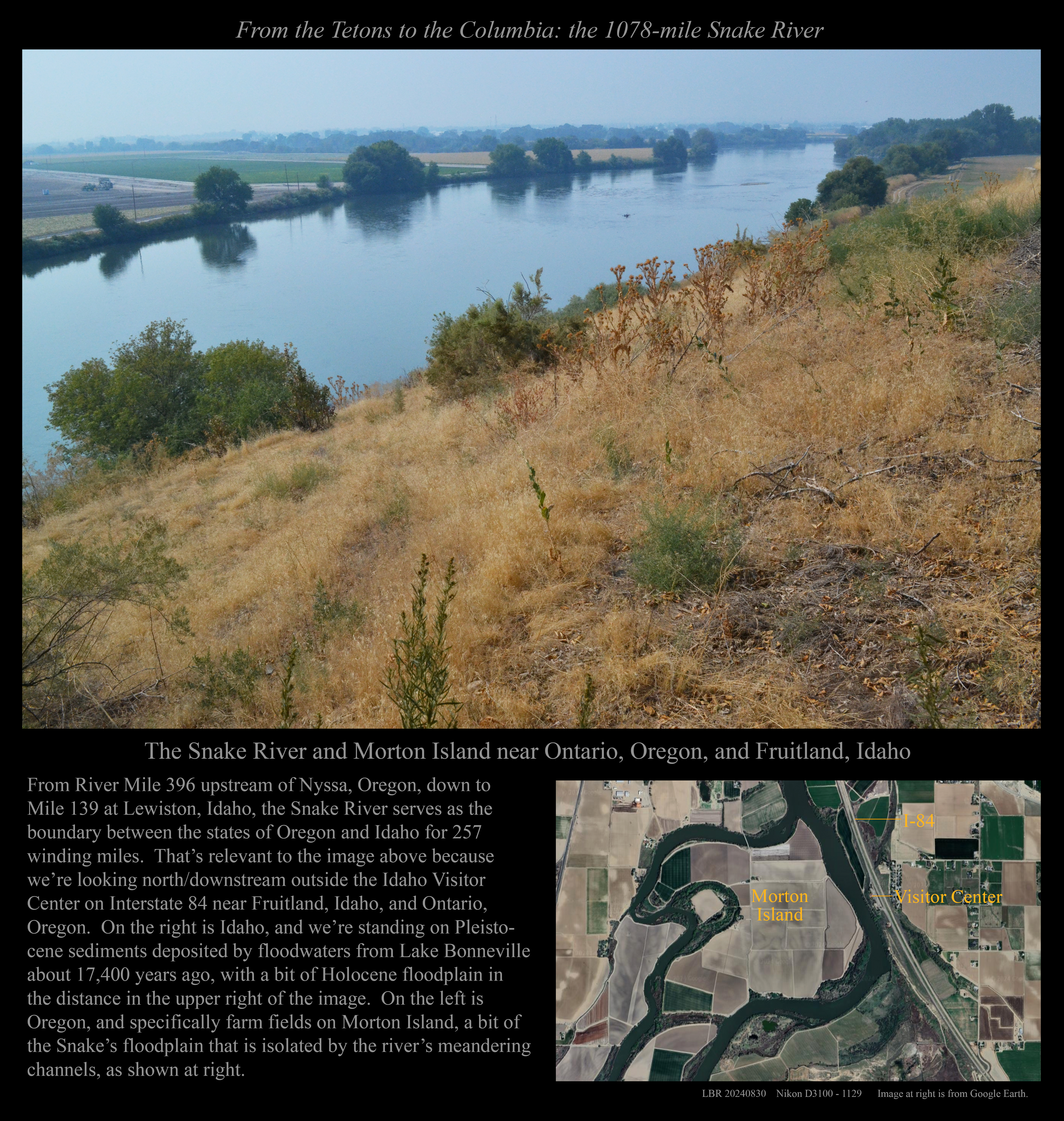 Just upstream from the above: A 2024 view of the Snake River in its modern channel.