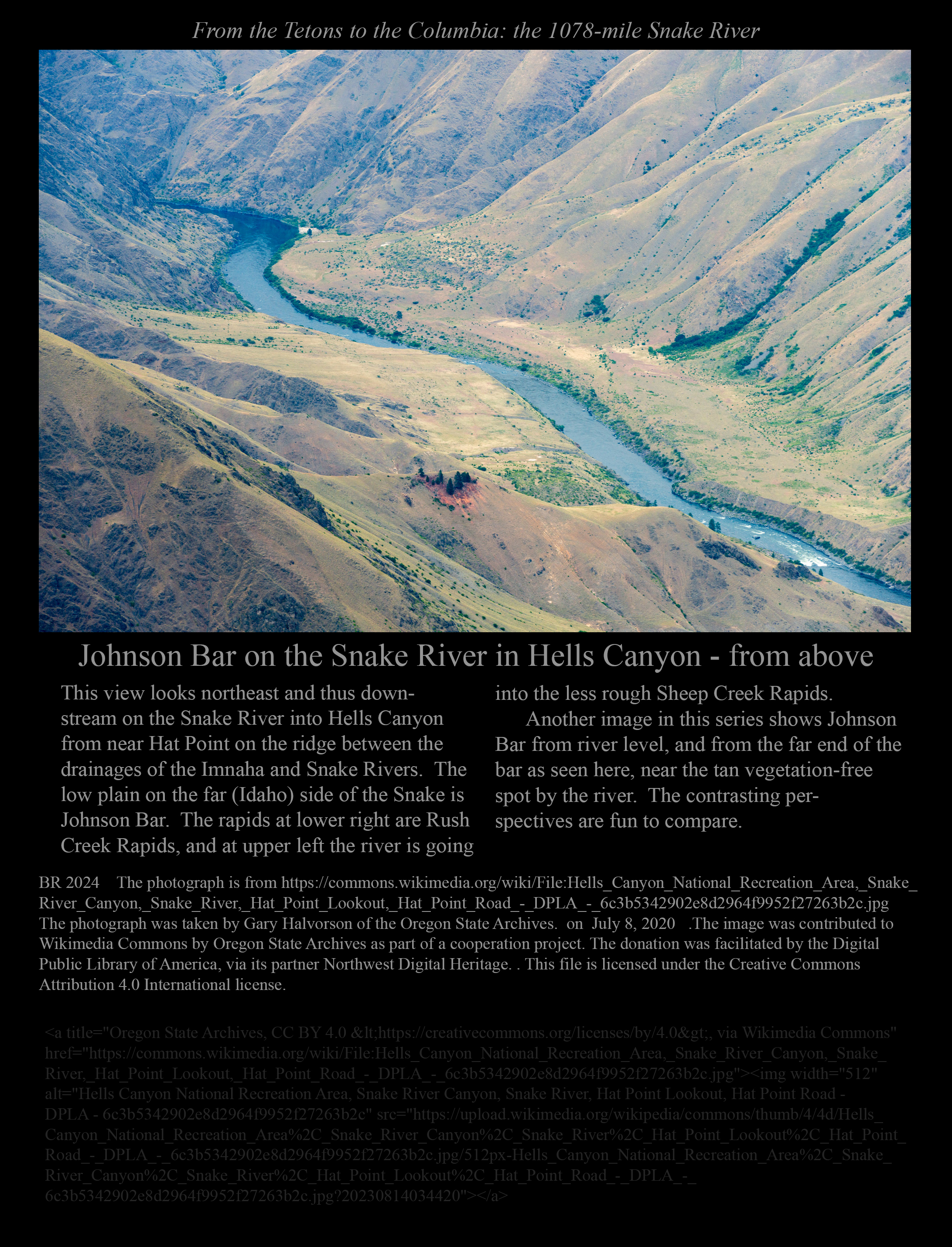 Johnson Bar in Hells Canyon seen from above, as opposed to . . . .