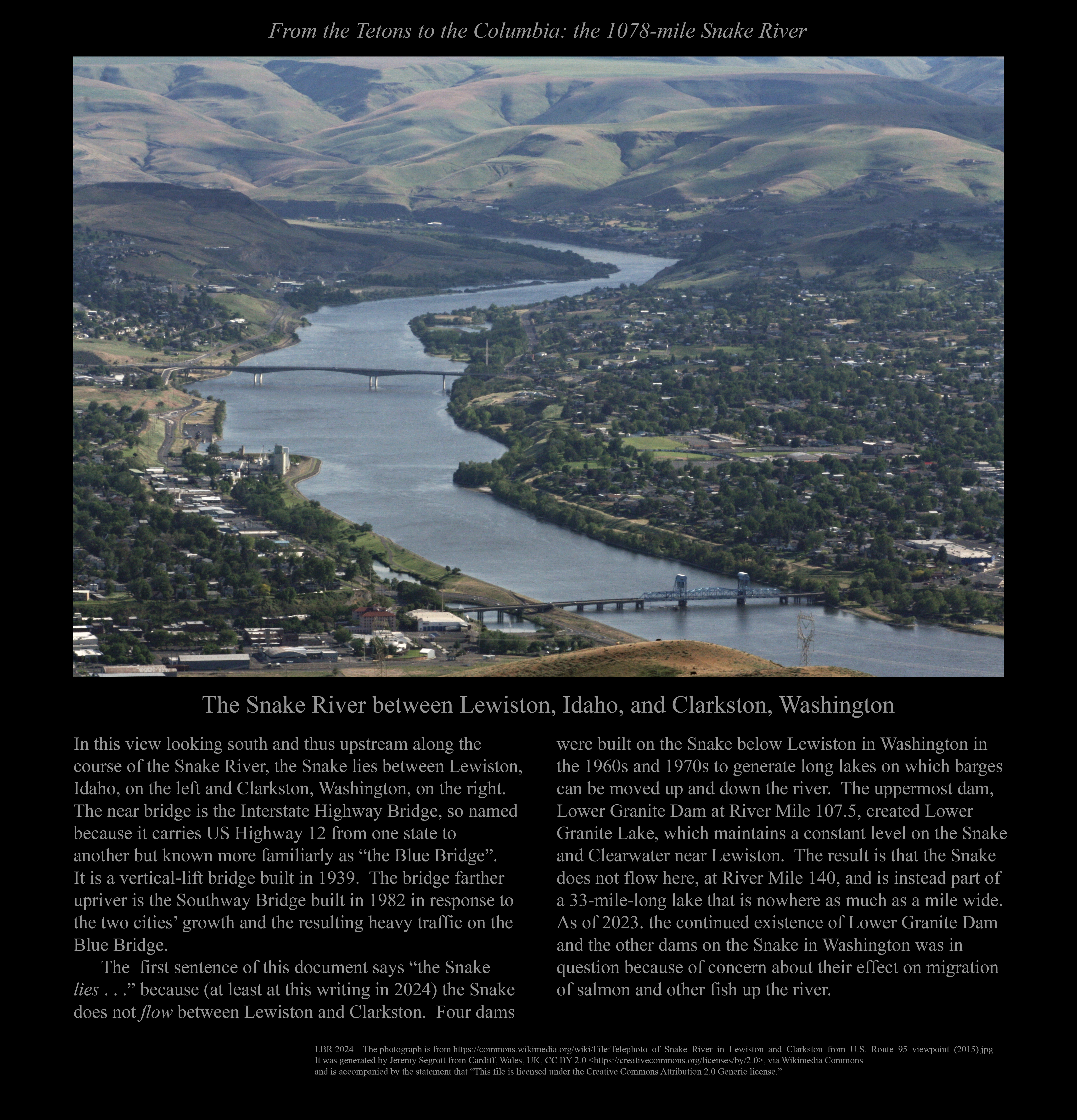 The Snake River between Lewiston, Idaho, and Clarkston, Washington.