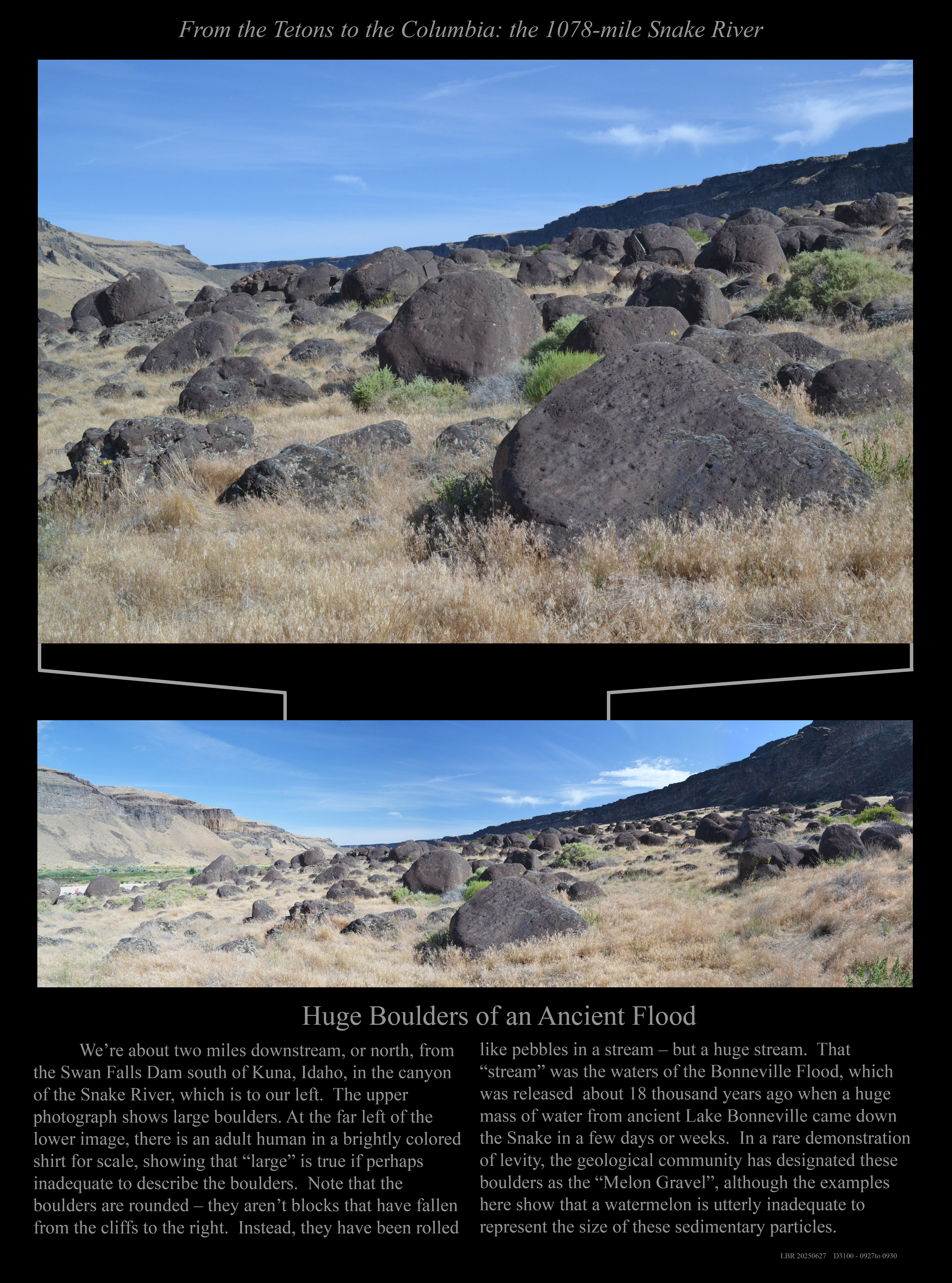 Boulders of the Melon Gravel deposited by the Snake near Hagerman, Idaho.