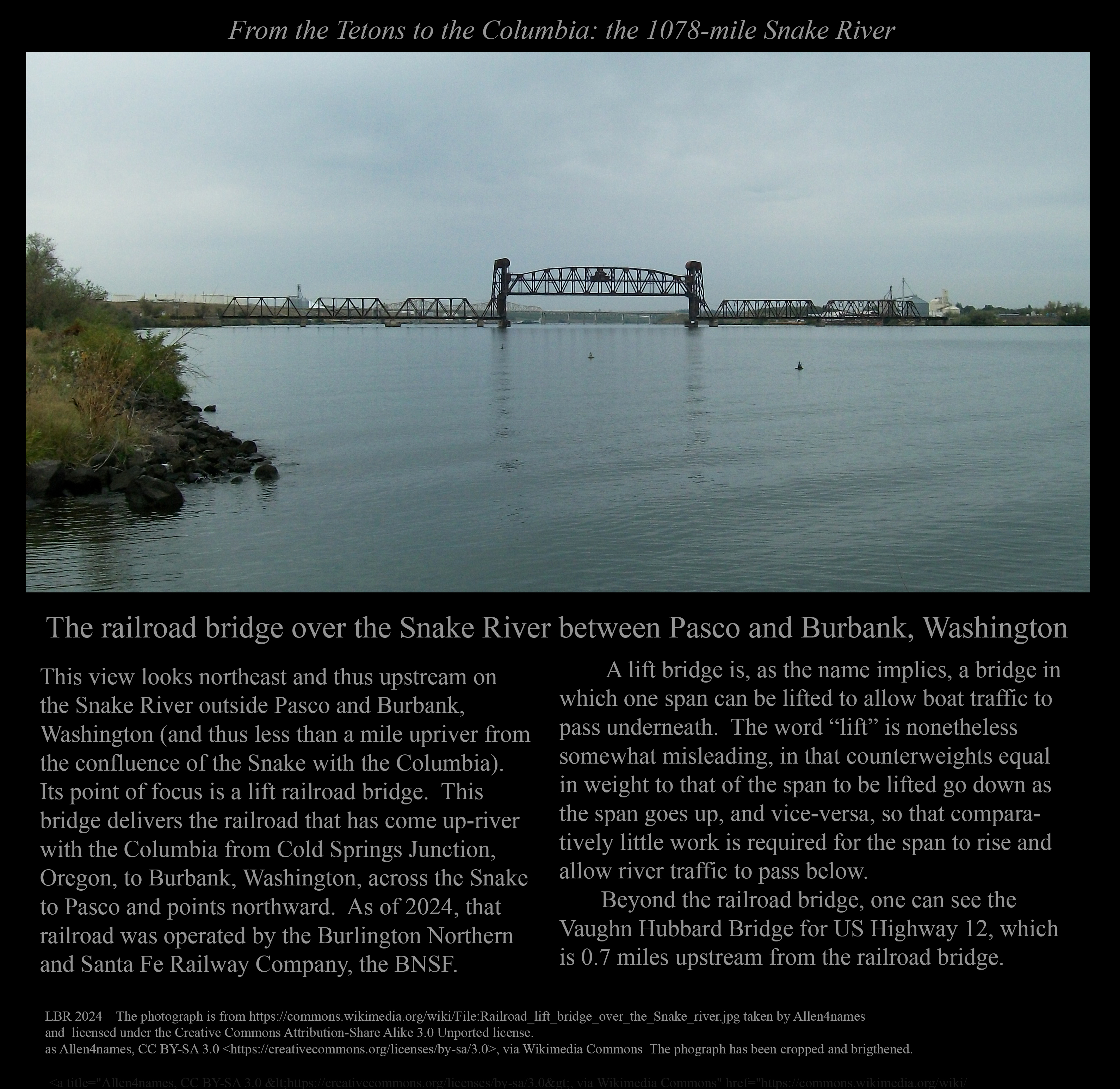 The railroad bridge over the Snake River between Pasco and Burbank, Washington.